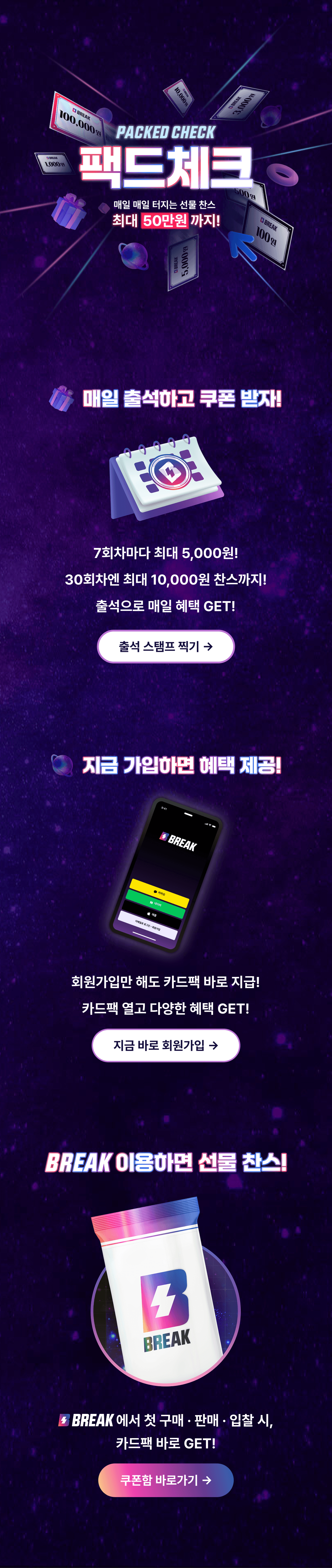 본 이벤트는 BREAK에서 진행하는 이벤트로, 사전 고지 없이 내용이 변경되거나 종료될 수 있습니다.