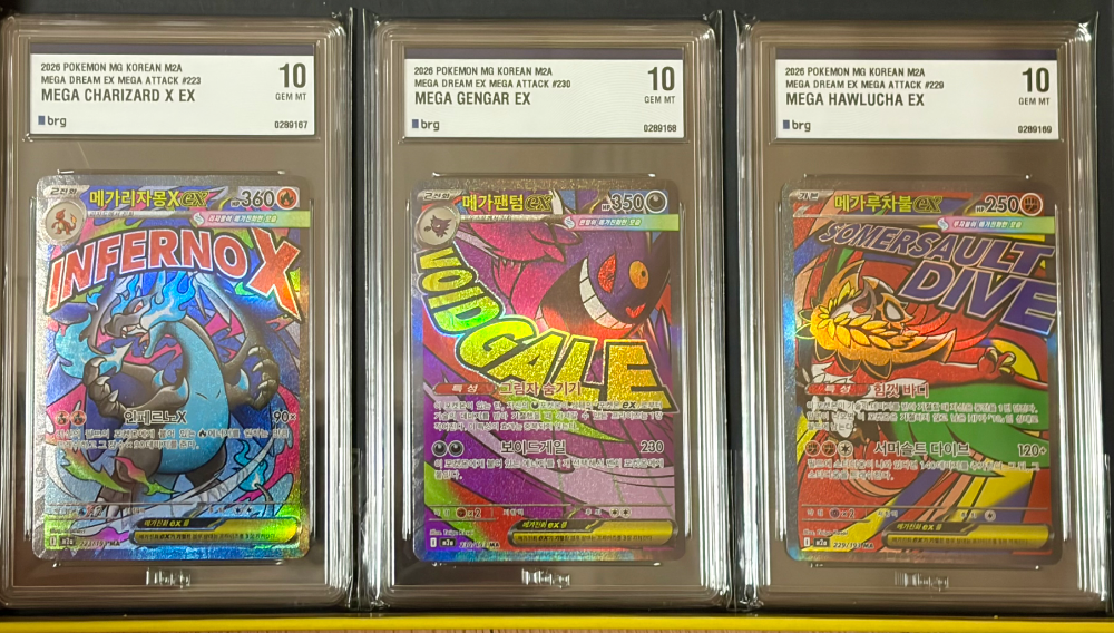 [ BRG 10 ] 메가리자몽X / 메가팬텀 / 메가루차불 MA (BRG 등급) - 트레이딩 카드 TCG 포켓몬스터 경매 입찰 상품. 가격 53,000원 (현재 입찰가). 판매자 TCG칼티에. 안녕하세요 🍀TCG 입니다🍀 ㅁ Made in ‘ Pack of God ‘ 3 연번 7 8 9 혼자만으로도 존재감 압도하는 ’ 리자몽 ‘ 7 같은 일러스터로써 같이 있을 때 하나의 작품이되는 ‘ 팬텀 ’과‘ 루차불 ’. 8 9 신도 너무 하지 ( 감사합니다 🙇♂️) 너무나도 완벽... BREAK 마켓플레이스에서 안전하게 거래하세요.